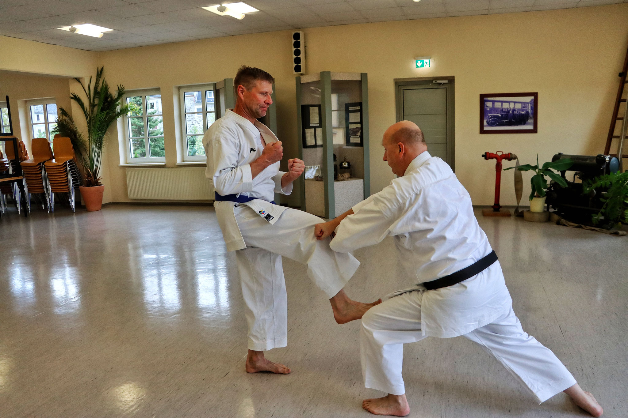 Auch Trainer müssen weitergebildet werden. Großmeister Ronald Schricker vom Karate Dojo Hirschberg führte am 20.05.25 in unserem Dojo einen Lehrgang in Vorbereitung auf die Prüfung zum jeweils 2. Dan im Shotokan Karate für Frank und im GGCS für Thomas durch. In den intensiven und schweißtreibenden 4 Stunden lag der Fokus auf korrekten und sauberen Stellungen und Ausführungen von Übungskomplexen und Katas.