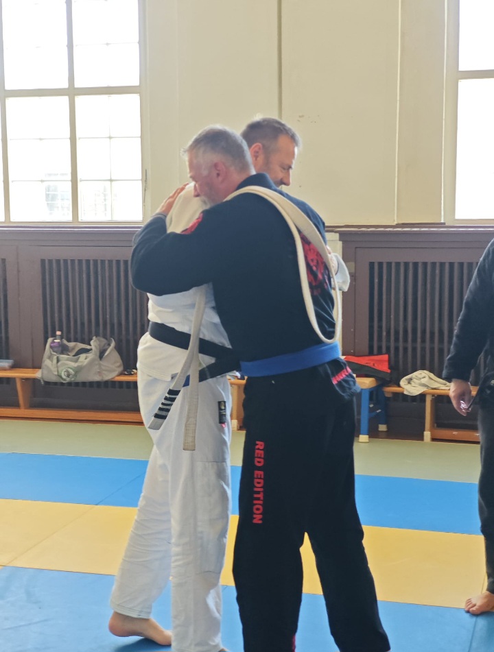 Am 21.09.25 wurde unserem Wettkampftrainer BJJ, Thomas, der Blue Belt BJJ von seinem Meister und Trainer, Marco Leik verliehen. Damit ist er der erste Blue Belt im Verein des OSC Löbau e.V., Abt. Kempo.